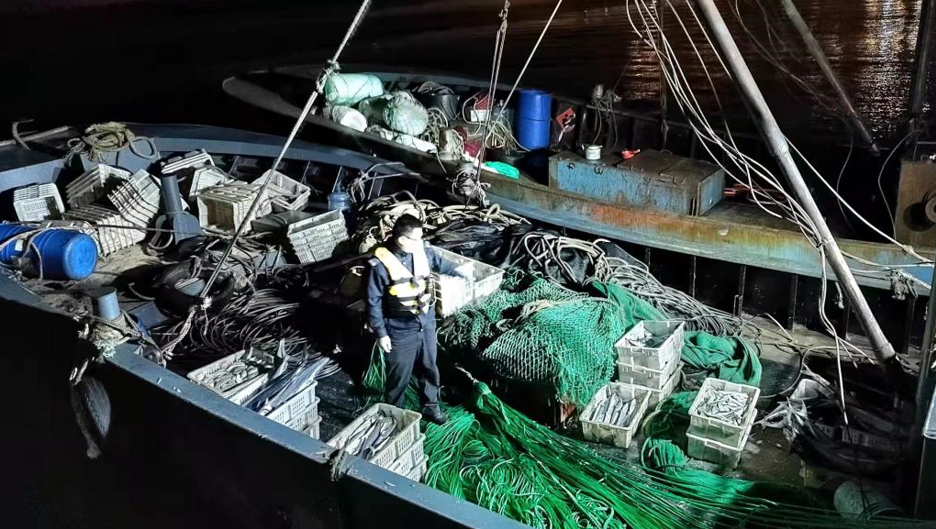 海警詢問違規(guī)漁船上的作業(yè)人員