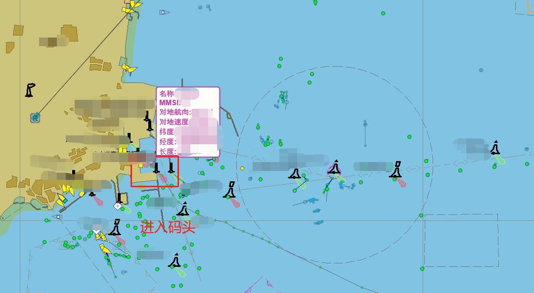 31分鐘之后值班人員報告:系統(tǒng)提示該船只已經進入碼頭。請岸上執(zhí)法力量予以配合,具體位置及船只名稱如圖所示。