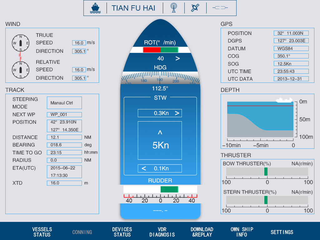 ● 舵機:采集船舶舵機工作狀態(tài),報警情況等信息